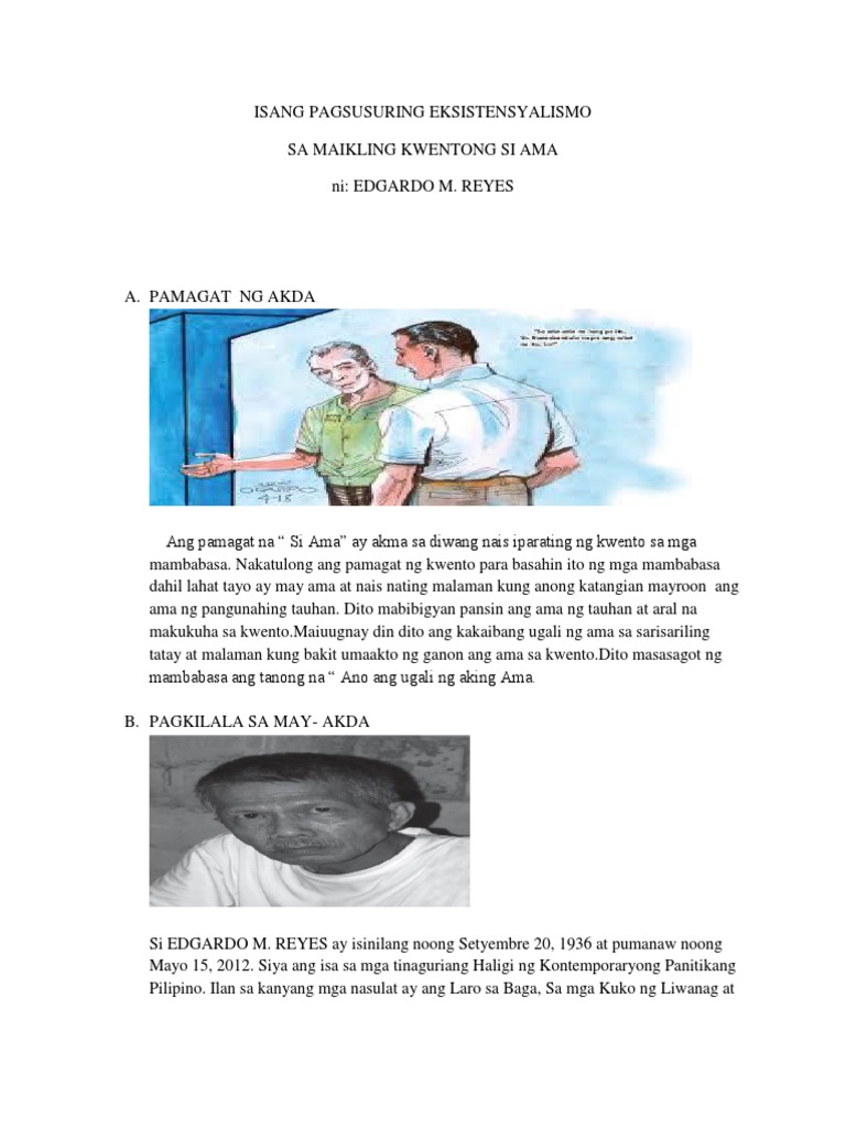 Magbabalik-aral sa kwentong Si Ama. Dahilt sa kalayaang ito ang tao ay responsible sa anumang maaaring kahinatnan o maging resulta ang kanyang ginawang pagpili. Halimbawa ng teoryang eksistensyalismo.
