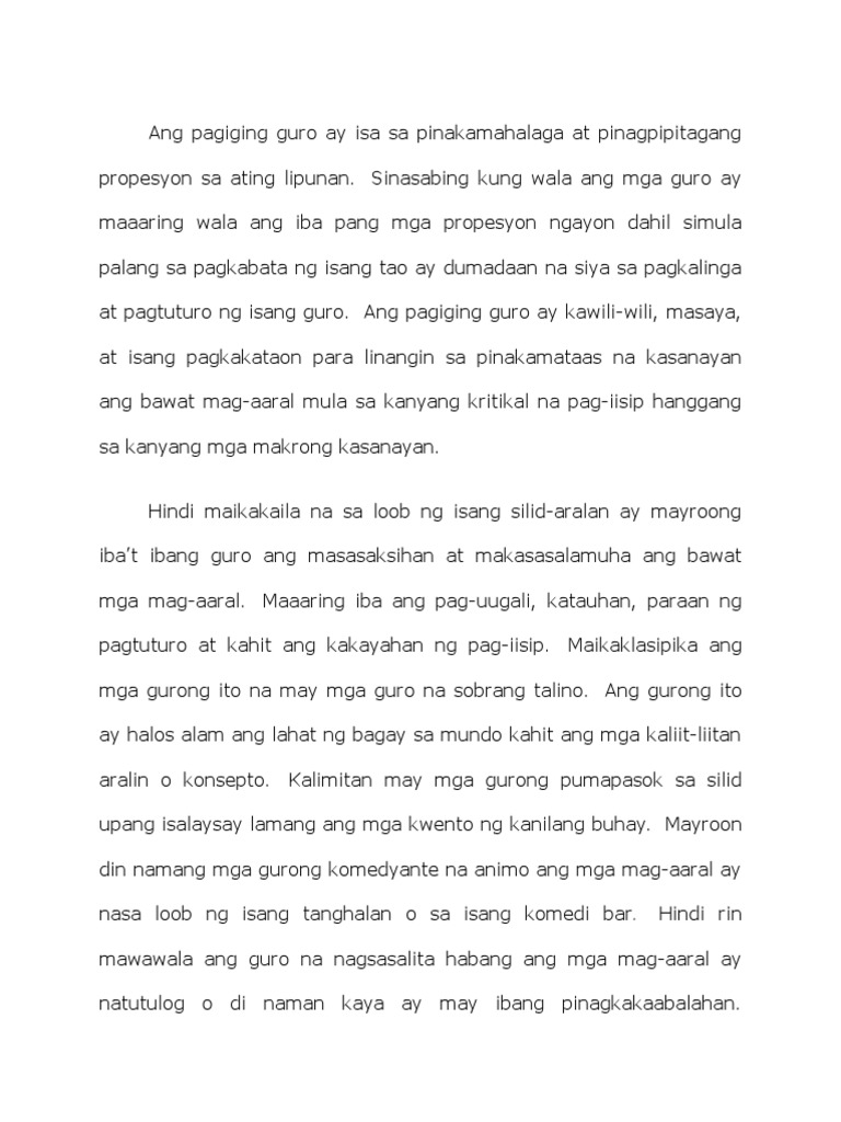 Ang Pagiging Guro Ay Isa Sa Pinakamahalaga At Pinagpipitagang Propesyon Sa Ating Lipunan